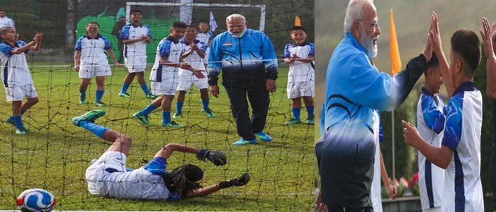 കളിക്കളത്തിൽ സ്ട്രൈക്കറായി മോദി! ഗാങ്ടോക്കിൽ കുട്ടികൾക്കൊപ്പം ഫുട്ബോൾ ആവേശത്തിൽ പ്രധാനമന്ത്രി; ചിത്രങ്ങൾ വൈറൽ