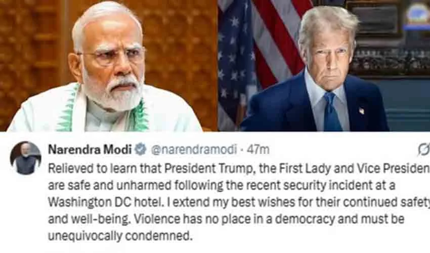 ജനാധിപത്യത്തില് അക്രമത്തിന് സ്ഥാനമില്ല; ഡൊണാള്ഡ് ട്രംപ് സുരക്ഷിതനായതില് ആശ്വാസം പ്രകടിപ്പിച്ച് പ്രധാനമന്ത്രി നരേന്ദ്ര മോദി