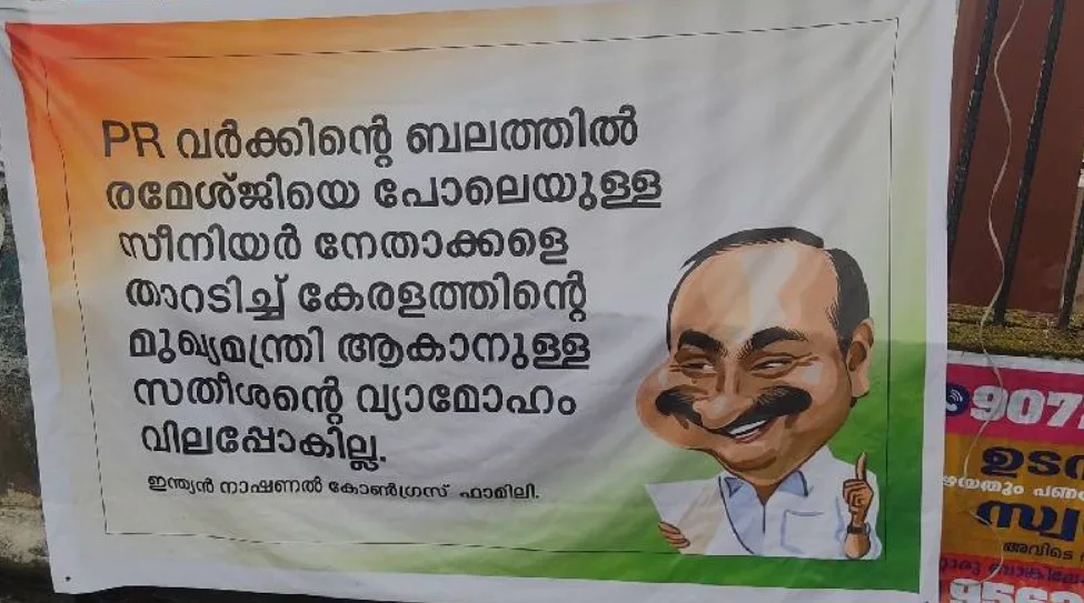 പിആർ വർക്കിന്റെ ബലത്തിൽ രമേശ് ചെന്നിത്തലയെ പോലുള്ള മുതിർന്ന നേതാക്കളെ താറടിച്ച് മുഖ്യമന്ത്രി ആകാനുള്ള മോഹം നടക്കില്ല; എറണാകുളം ഡിസിസി ആസ്ഥാനത്തിനു മുന്നിൽ വി ഡി സതീശനെതിരെ ഫ്ലക്സ് ബോർഡ്