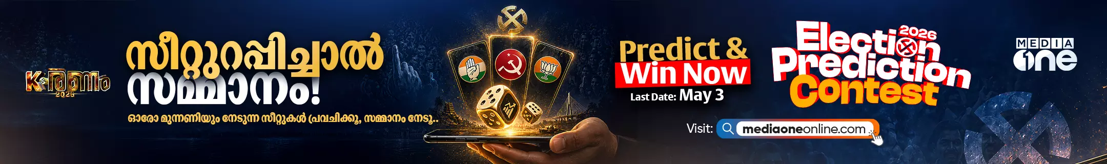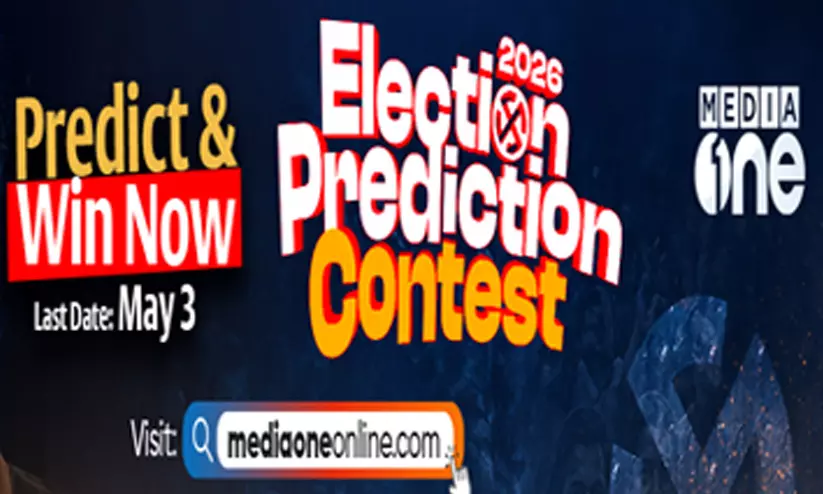 മെയ് 4- ലെ തെരെഞ്ഞെടുപ്പ് ഫലം കൃത്യമായി പ്രവചിക്കൂ, സമ്മാനങ്ങൾ നേടൂ.www.mediaoneonline.com സംഘടിപ്പിക്കുന്ന ഇലക്ഷൻ പ്രവചന മത്സരത്തിൽ പങ്കെടുക്കാൻ സന്ദർശിക്കുക:https://prediction.mediaoneonline.com